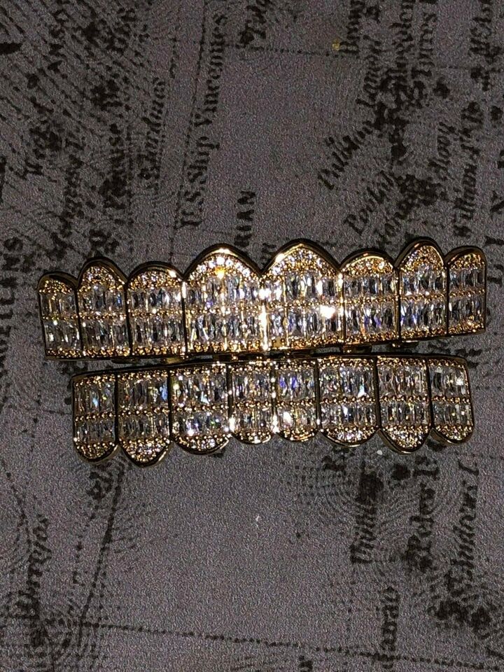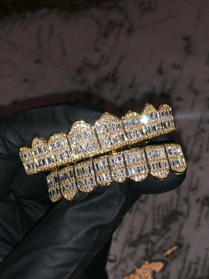 Upgrade your style with these 14k Gold Baguette Joker Grillz, designed to make a bold statement in any crowd. Featuring iced-out baguette-cut stones set in a high-polish 14k gold-tone finish, this 8-tooth set (top and bottom) delivers ultimate hip hop swagger with a Joker-inspired twist. Perfect for parties, music videos, photoshoots, or everyday flexing. https://bisc.online/product/14k-baguette-jok…p-8-tooth-grills/ ‎