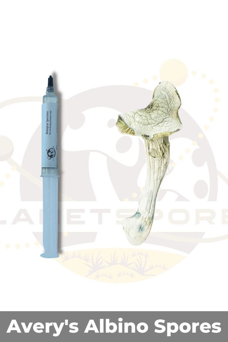 - Averys Albino Mushrooms growingClose up of Avery’s Albino spores in 10ml syringeAvery’s Albino mushroom spore syringeAvery’s Albino Magic Mushroom