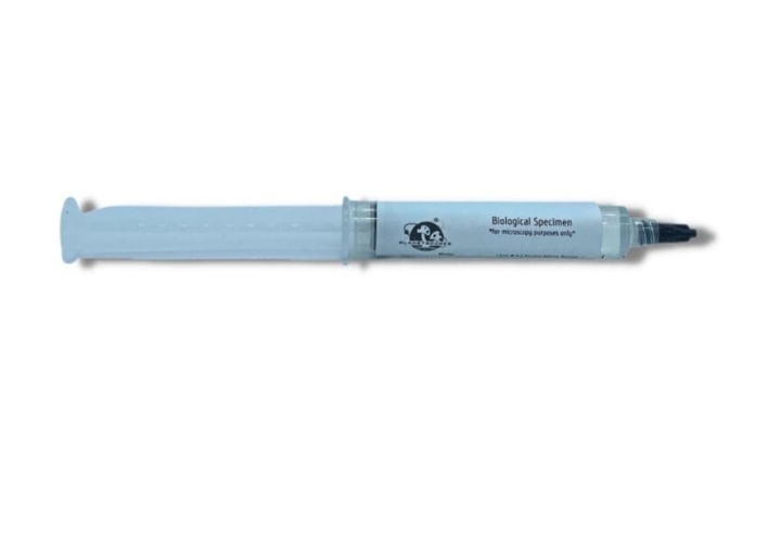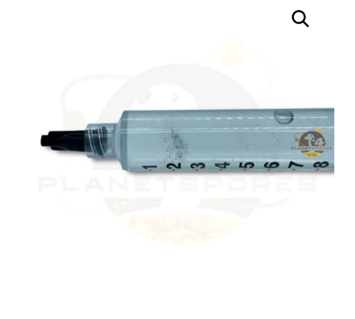 - Close up of Avery’s Albino spores in 10ml syringe