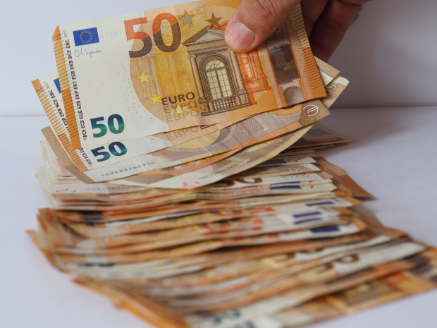 notes of 5 €, 10 €, 20 €, 50 €, 100 €, 200 € et 500 € .