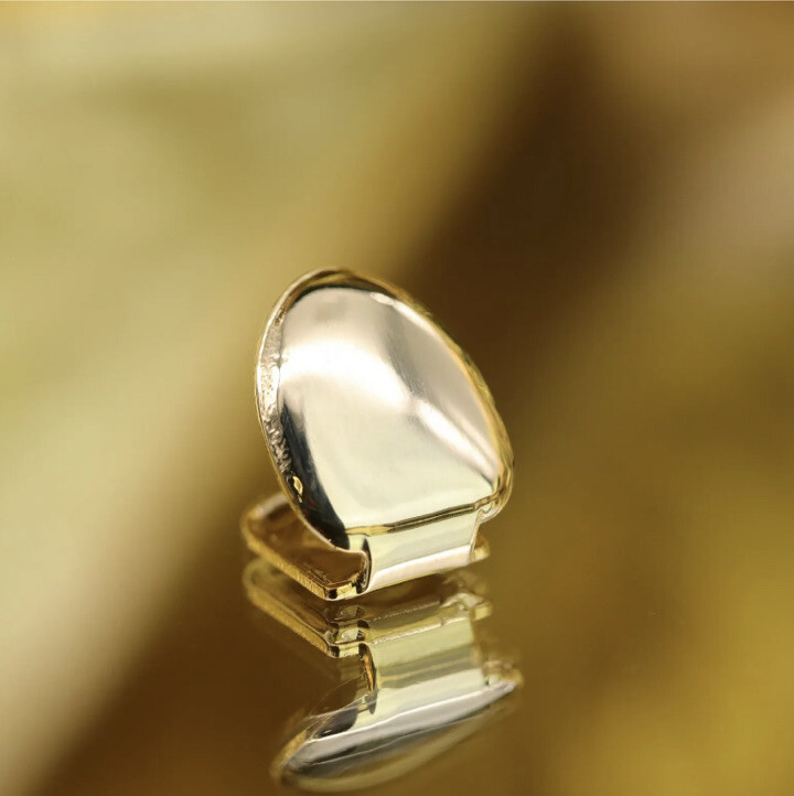 Elevate your style with this sleek Gold Grillz Single Tooth Cap, designed to add a subtle yet bold touch to your smile. Crafted with a polished gold-tone finish, this plain top tooth grill offers a minimalist look that perfectly complements any hip hop or streetwear outfit.